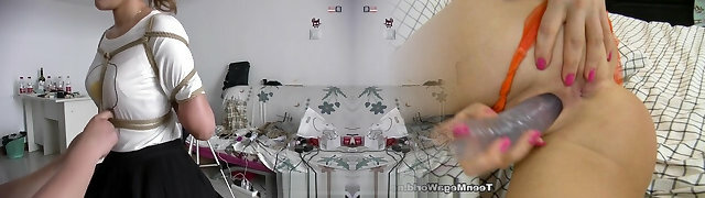 Tied slut ass toyed