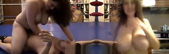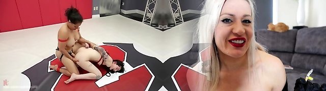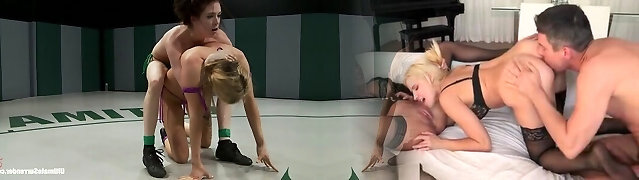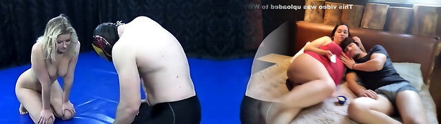 Kaiia Eve mingled nude wrestling battle putting on her strapon