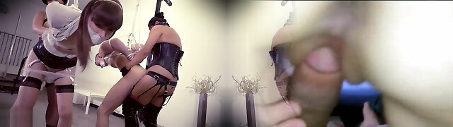 Japanese milf cock-squeezing bondage, gagged and tortured