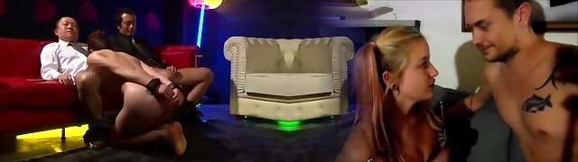Sexy depraved whore serves and dominates four ugly old dudes