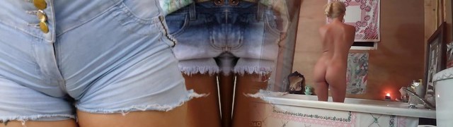 Depraved housewife Lukerya excites her devotees during the online broadcast spreading her gams wide.
