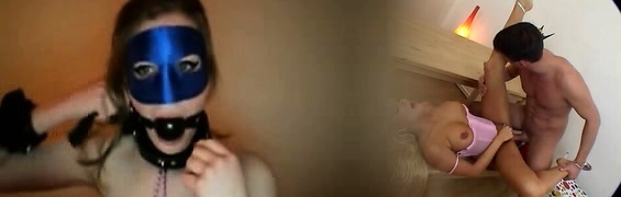 Kinky blonde honey got chained and forced to cum and eat jizz, at the same time