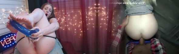 Girl next door type riding a fat brutal faux-cock