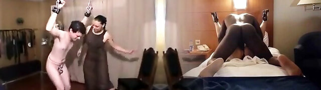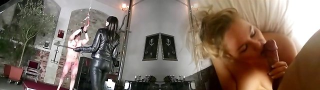 kinky guy is tied while mistress bangs