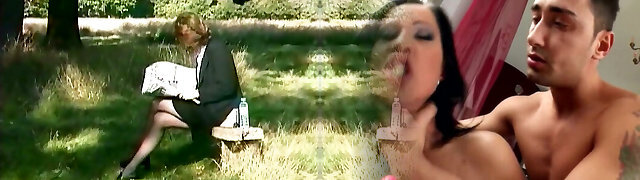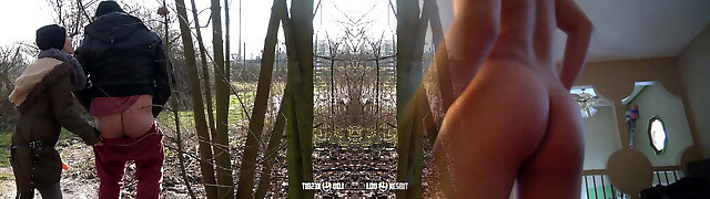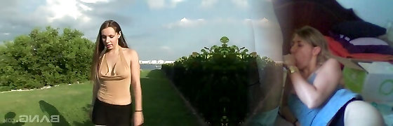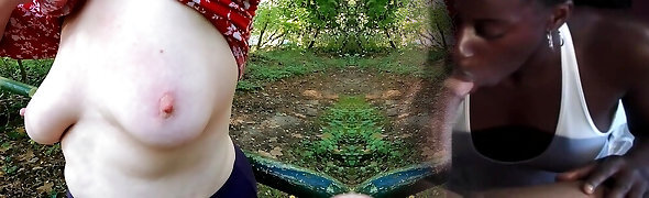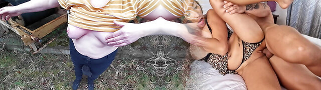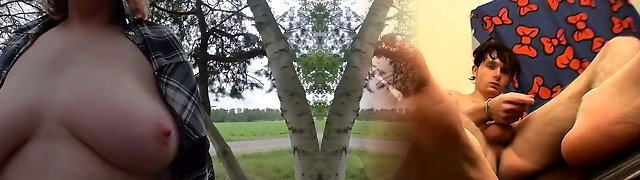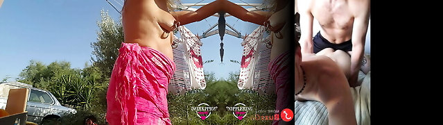 nippleringlover - horny cougar topless outdoors flashing pierced tits & pierced pussy, extremely stretched nipple piercing