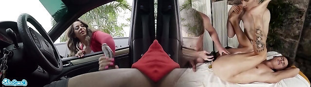Two kinky latinas flashing their beavers on a public bus and seducing a guy for a threesome in a taxi