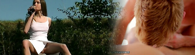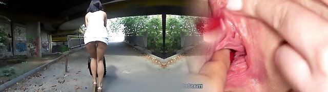 Skinny blonde flashing her smallish tits on public to send a couple of erotic photos to her paramour to seduce him