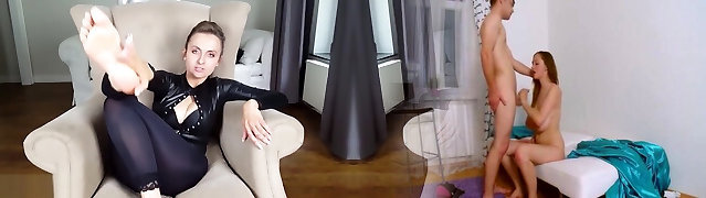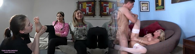 My stepsister asks me to film her feet but she turns me on and gives me a good footjob and then I cum on her feet