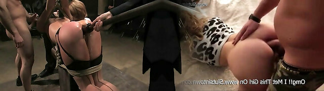 Kinky babe ravaged by gang of extreme perverts and destroyed in b