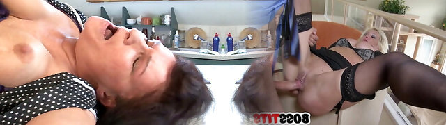 British gran fucked with strapon in lesbo domination 3way