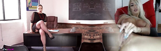 Secretary in a green office outfit. Wanilianna in green outfit toying as a kinky stockinged and perverted secretary
