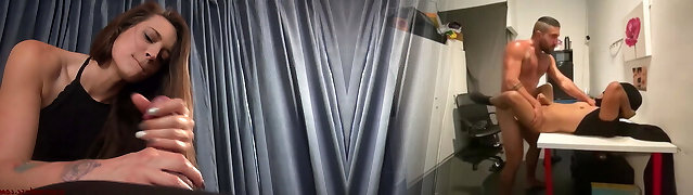 The two lovelies dominate the crime boss and they undressed him until the veiny dick of him popped out.