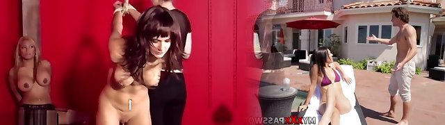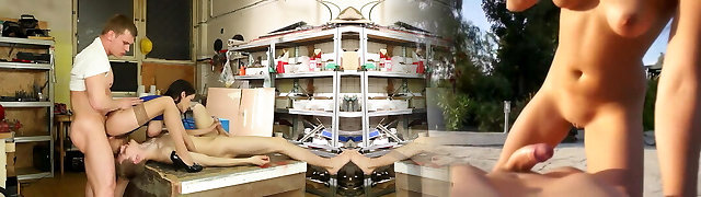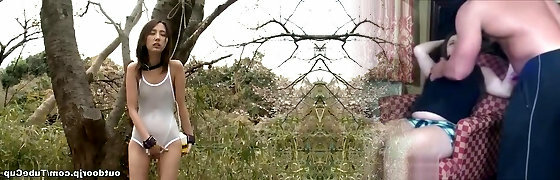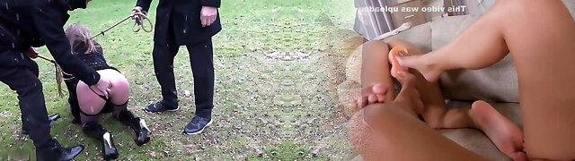Un couple pervers a acheté une jeune brune esclave , en ténue spectacular et au corps de rêve, afin de la soumettre brutalement au bord de la route