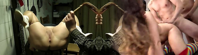 Blonde and brunette Dominatrix severe brutal hips caning