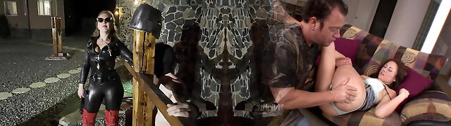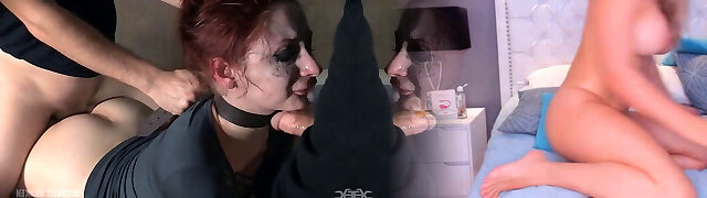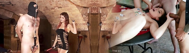 Honey in chains opens her mouth for hot studs's fat dicks