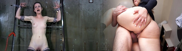 Mind blowing blond mom in cuffs is tormented and toyed