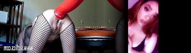 Hot little amateur fucks her young pussy with a horse dildo displaying cervix