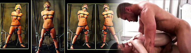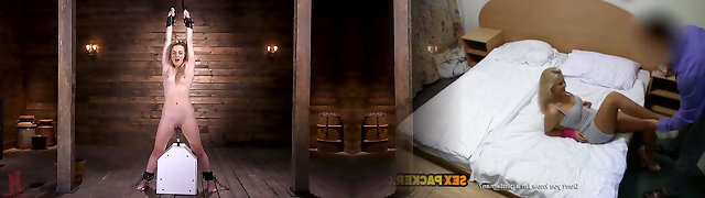 Blondie slave in bondage inserted in polythene in BDSM porn