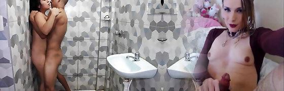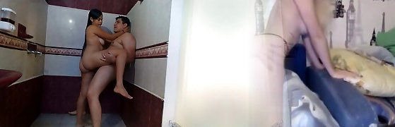 Real Cheating. While Her Husband Is In The Apartment, She Fucks In The Bathroom With Her Neighbor
