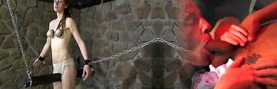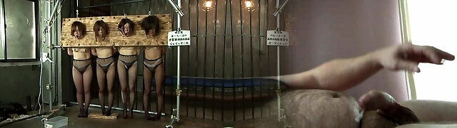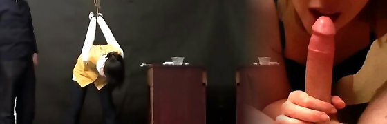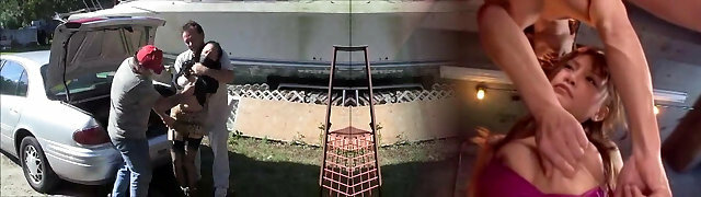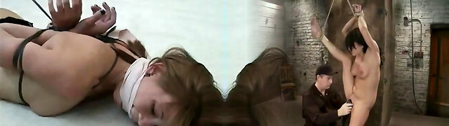 Busty hogtied beotches get hung above the floor and treated in BDSM way