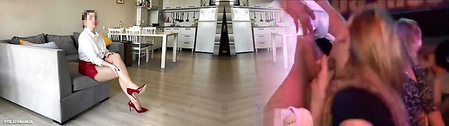 Female Domination Handjob and Legs Fuck in Pantyhose and High Stilettos