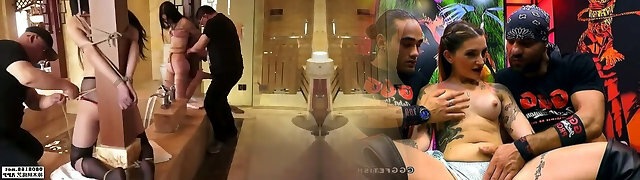Two studs hate vags and want to punish brunette and ginger sex-slaves