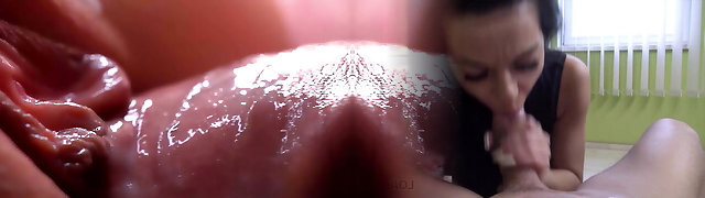 Lustful student gal with an harmless face loves to suck cock and get cum on her face after titfuck