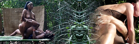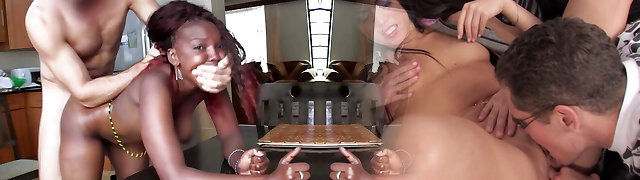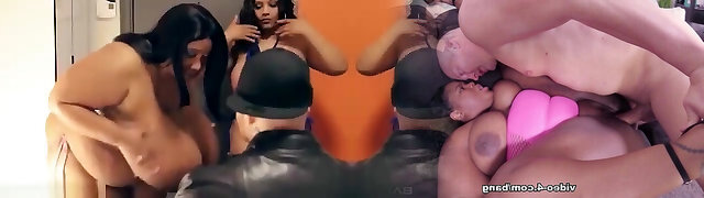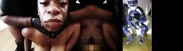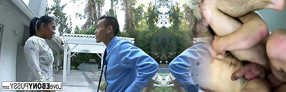 Lactating Asian gets fucked in both her holes while being forced to gag on several black beefsticks