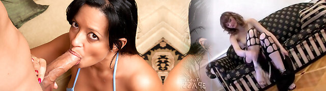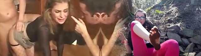 Two phat cock dudes stuff their rods in all the holes on slut in a latex Domination & Submission suit