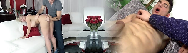 Tied Gagged And Blindfolded, Buxom Milf Lured Her Stepson's Cock In Her Uncovered Cunt & Got Creampied