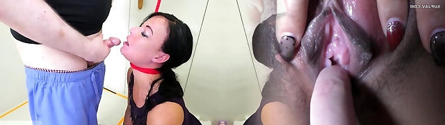 Blindfolded and manacled submissive mega-slut learn how suck dick and take cum on her face and in mouth! Hard full homemade