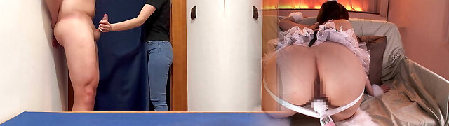 I jerk off in the dressing apartment of the clothing store and call the working nymph to help me finish cumming
