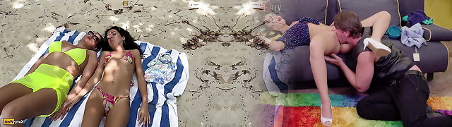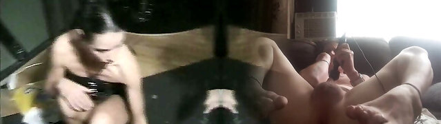 Wifey facesitting husband with a smallish pecker, she’s teasing him with feet and she calls him cuckold.