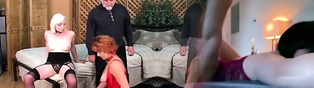 CFNM urinating babes in reverse gangbang party
