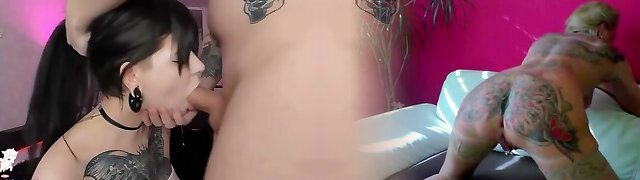 Submissive Goth Tattooed Slave Facefucked And Deepthroat While Drinking Milk Ends In Facial Cumshot