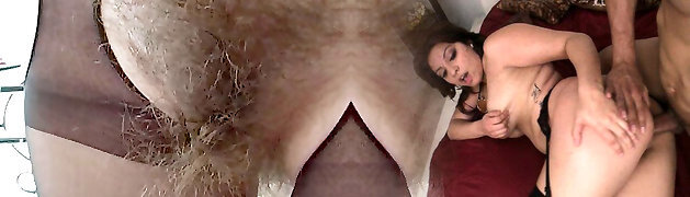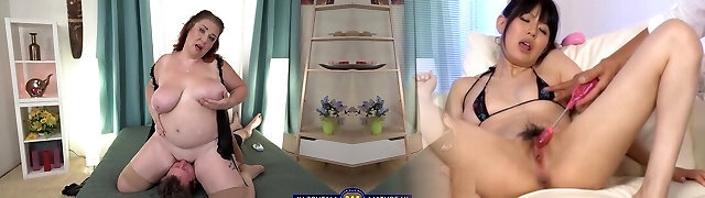 Busty wife Milky Mari get big unprotected creampie inside her hairy pussy in standing doggystyle position