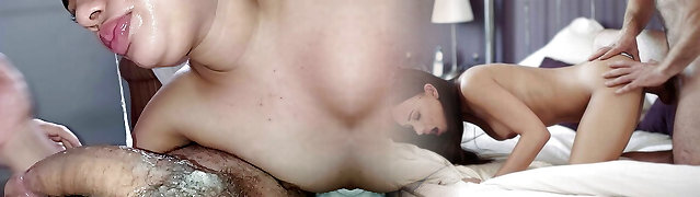 Shh shh don't go screaming! - Stepbrother pounds his stepsister's ass very firm when she comes home from school.