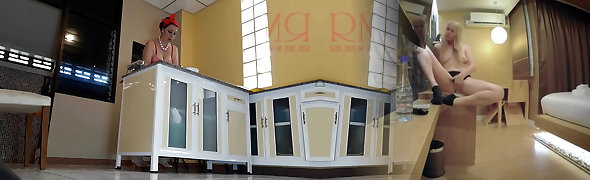 Naturist housekeeper Regina Noir cooking at the kitchen. Naked maid makes dumplings. Naked cooks. bra 3