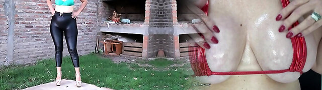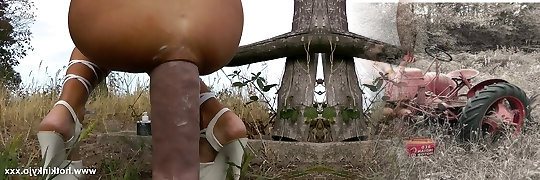 nippleringlover horny milf inserting objects in extreme stretched pierced nipples playing with pierced pussy outdoors