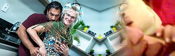 Curvy Ash-blonde Brazilian Mistress Smokes a Cigarette & Blows a Knob Before Making the Guy Cum On Her Tits