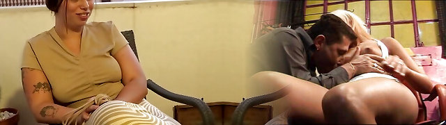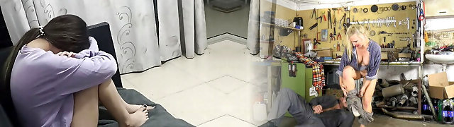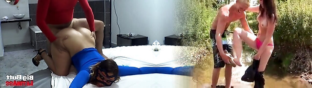 Young schoolgirl and step-dad discover her cousin masturbating with her thong and gets anal pounding