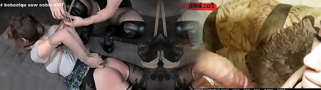 Lesbian MILF fucking tied up nubile