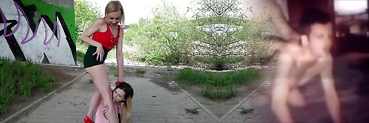 Mistresses Agma And Sofi Spit On Slave-Doll On A Public Balcony - Lezdom Slobbering