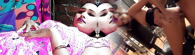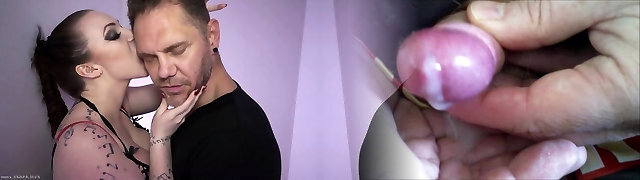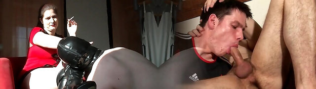 sexy mistress femdom blowjob - sucking my slave's fat schlong & licking his balls. My whip makes him moan in delectation