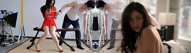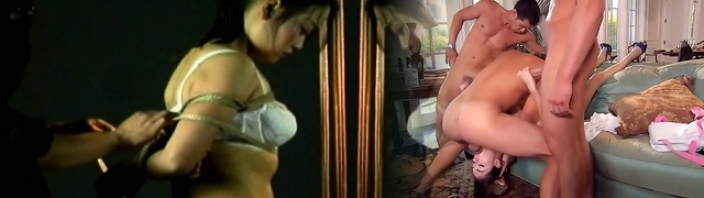 Un couple pervers a acheté une jeune brune esclave , en ténue spectacular et au corps de rêve, afin de la soumettre brutalement au bord de la route
