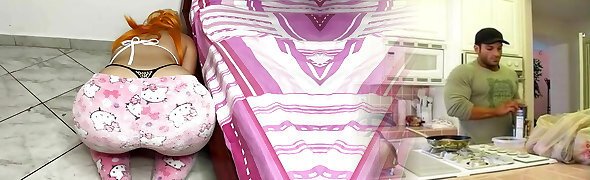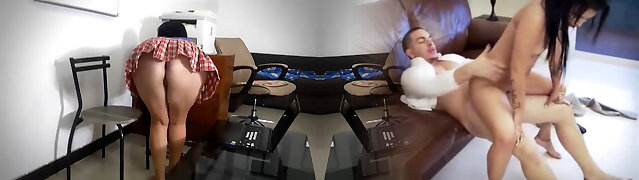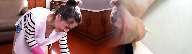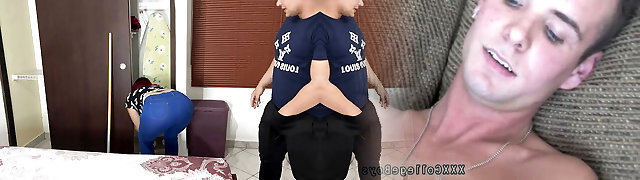 Sexy Maid Wife Cleaning Bedroom in Tight Pants and Guy Couldn't Fight Back the Temptation of her Big Butt