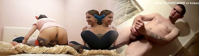 POV stepdad teasing masturbate and rubbing shaved super-naughty pussy schoolgirl close-up . cumshot and creampie orgasm