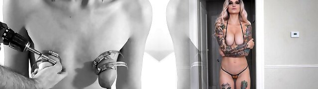 nippleringlover outdoor demonstrating pumped pussy & pierced nipples - inserting big rings in engorged pierced pussy lips