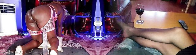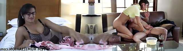 STRAP-ON SUCK foot fetish Kittling spandex submissive PVC fetish stocking nylon worship - Arya Grander and mod Fetishaura