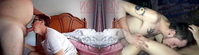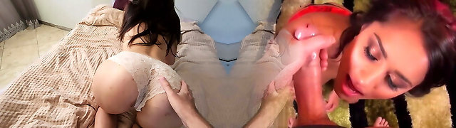 The bitch inhales her buddy'_s dick. Point of view. A man pokes a whore in the mouth without panties.